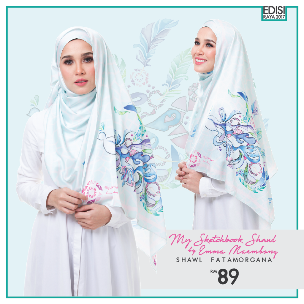 Shawl Emma Maembong sangat exclusive dengan design emma lukis sendiri tau, bukan itu je.. selain tu shawl ini: