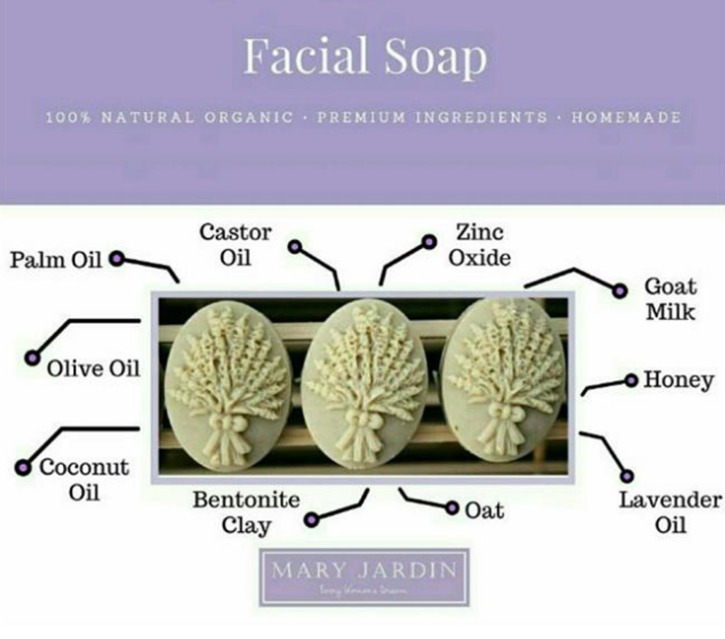 Mary Jardin Sabun Muka Mewah Handcrafted adalah hasil daripada resipi tradisional yang kedua-duanya memurnikan dan melembapkan pada kulit. Ia membersihkan jauh ke liang-liang untuk menghilangkan kotoran dan minyak yang berlebihan, menjadikan kulit kelihatan lembut, licin dan lebih berseri. Mengandungi exfoliant yang semulajadi untuk menghapuskan kulit yang kusam, tidak bermaya dan mendedahkan kulit yang baru, segar dan cantik